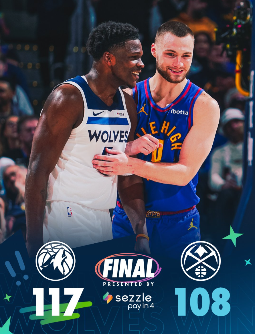 森林狼险胜掘金后拿到三连胜,他们与掘金的卡位战赢下后已经跟掘金拉开1个胜场;